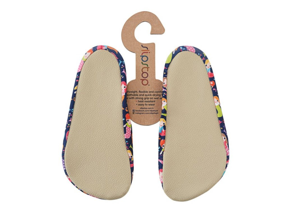 Protišmykové topánky od značky Slipstop sú priedušné a rýchloschnúce. Výrazne znižujú riziko pošmyknutia a pádu na klzkých a mokrých povrchoch. Chránia nohy pred horúcim pieskom a drsnými povrchmi, sú ľahké, flexibilné a pohodlné. Slipstop topánočky sa tiež ľahko obúvajú a vyzúvajú pre ich jednoduchý "ponožkový" patent. Sú vhodné na plávanie, gumička okolo členku zabraňuje ľahkému zošuchnutiu. Vďaka svojim vlastnostiam sú vhodné nielen do vody, k bazénu či na kúpalisko, ale môžete ich využiť aj do vnútorných priestorov napríklad ako papučky. Ich pohodlný a funkčný dizajn si zamilujú deti aj rodičia. Sú dostupné v rôznych farebných prevedeniach.