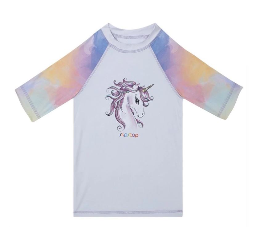 Rýchloschnúce detské tričko s UPF ochranou pred slnkom až 50+ od značky SlipStop, vďaka ktorému je pokožka detí chránená aj pri kúpaní. Jemný, plavkový materiál je pohodlný na nosenie. Tričko je ľahučké a ani po namočení detičky nezaťažuje, môžu sa tak bezpečne a nerušene hrať vo vode. Je možné ho nakombinovať aj s UV čiapkou alebo tiež SlipStop topánočkami do vody, ktoré máme tiež v ponuke. Starostlivosť a údržba je jednoduchá, tričko treba prať prevrátené v práčke pri 30°C alebo ručne, nesušiť v sušičke a nežehliť.