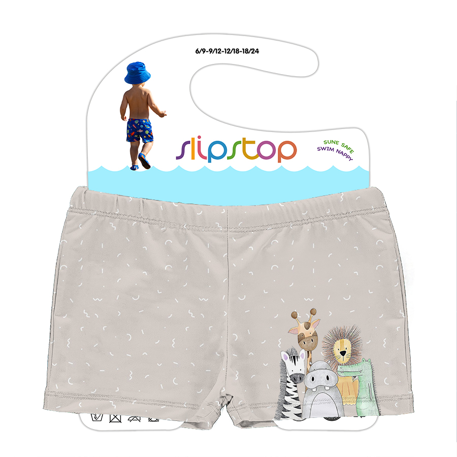 Rýchloschnúce detské plavky s UPF ochranou pred slnkom až 50+ od značky SlipStop, vďaka ktorým je pokožka detí chránená aj pri kúpaní. Jemný, plavkový materiál je dostatočne elastický, takže dobre sedí na detskú plienočku. Nohavičky sú ľahučké a ani po namočení detičky nezaťažujú, môžu sa tak bezpečne a nerušene hrať vo vode. Plavky je možné nakombinovať aj s UV čiapkou, tričkom alebo tiež SlipStop topánočkami do vody, ktoré máme v ponuke. Starostlivosť a údržba je jednoduchá, plavky treba prať prevrátené v práčke pri 30°C alebo ručne, nesušiť v sušičke a nežehliť.
