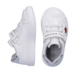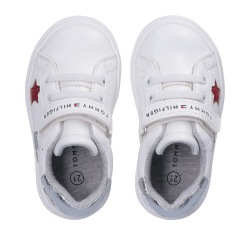Štýlové tenisky od značky Tommy Hilfiger. Sedia na normálne široké nôžky. Majú pevnú pätu, vďaka čomu sú členky dobre zafixované. Vnútro tenisky je potiahnuté príjemnou textíliou, čo prináša komfort pri chôdzi. Zapínajú sa na suchý zips a šnúrky sú elastické.