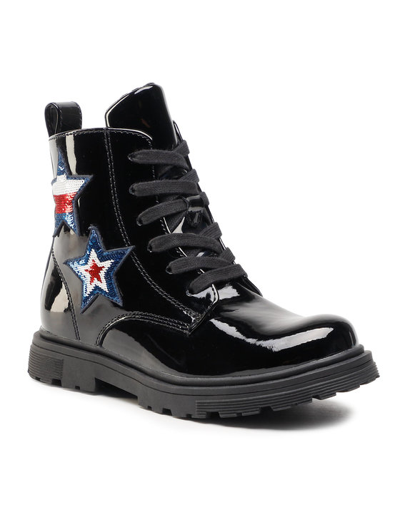 Vyššie, lakované topánky od značky Tommy Hilfiger. Zboku majú zapínanie na zips a dajú sa pekne dotiahnuť šnúrkami. Sedia na normálne široké až užšie nôžky.