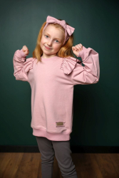 Dievčenská mikina s volánikmi na pleciach od poľskej značky Tuss, ktorej produkty sa vyznačujú vysokou kvalitou spracovania v kombinácii s mimoriadne atraktívnou cenou. Mikina je veľmi pohodlná, je vyrobená z kvalitnej bavlny. Štýlový dizajn doplní šatník každej malej slečny .